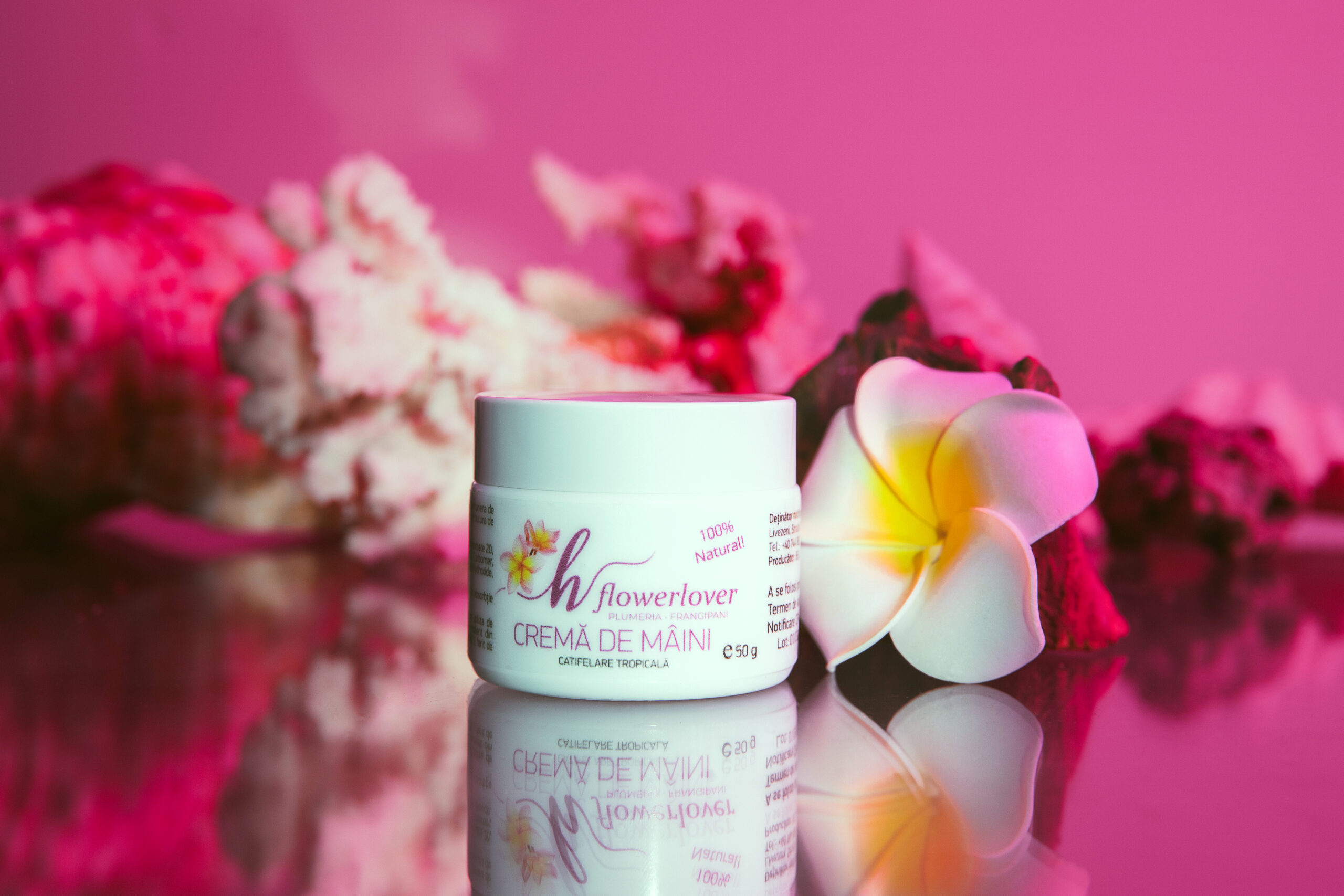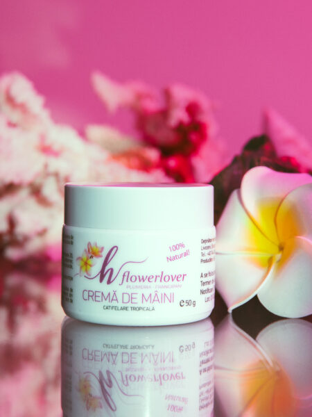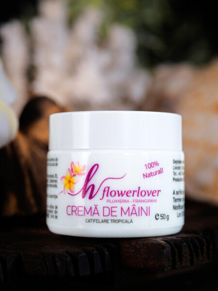 Cremă de mâini Flowerlover este creată cu atenție din ingrediente 100% naturale și îmbogățită cu ulei organic de Frangipani (Plumeria) – un ingredient prețios, cunoscut pentru proprietățile sale intens hidratante, calmante și regenerante.